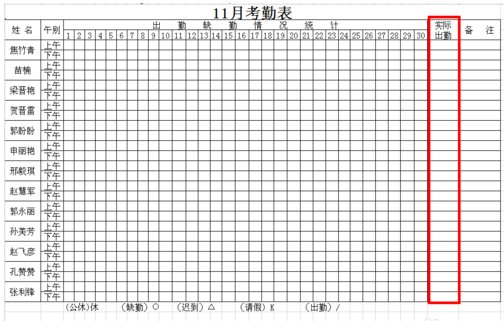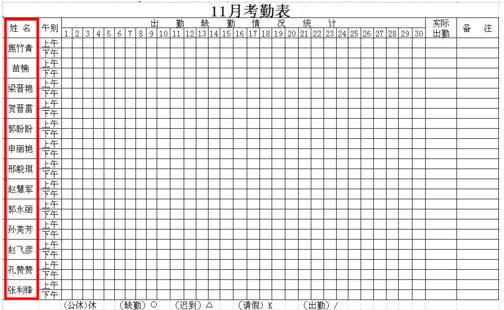 2、考勤表包括的第二个重要的方面就是姓名了,这里的姓名是指公司的所有员工,包括老板在内。