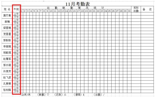 3、这里的标记就是说在员工上午的考勤记录和下午的考勤记录。
