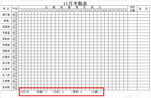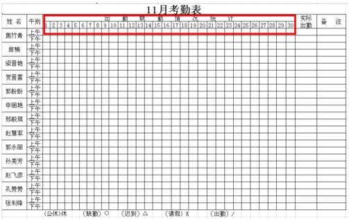 4、另外还需要有每个月每天的一个考勤标记,只有这样才能更好地展现出专业的,有据可依的表现,更让我们的考勤明朗化