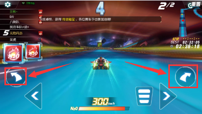 注意:如果我们在卡速操作的时候先点按左漂移键,那立马再点按的就是右方向键,这样才能使车子来回转换;
