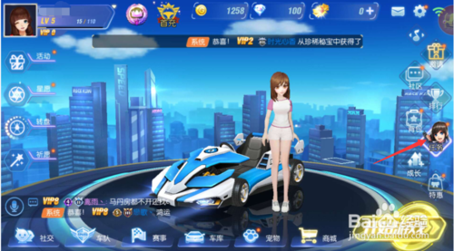 休闲区,去找到自己心仪的伙伴,交友吧,车库,可以看自己拥有了几辆车,或者试用的还有几天到期,也可以改装赛车