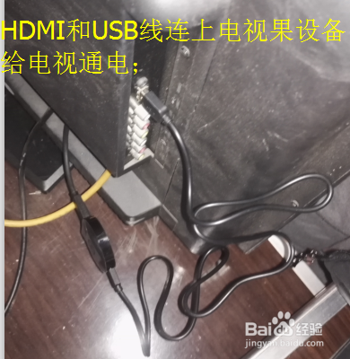 给电视果连上hdmi和usb线;