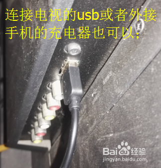 连上电视并且给电视通上电源;usb接口接在电视最方便了,要是电视usb接口有问题就接在充电器的电源接口即可;