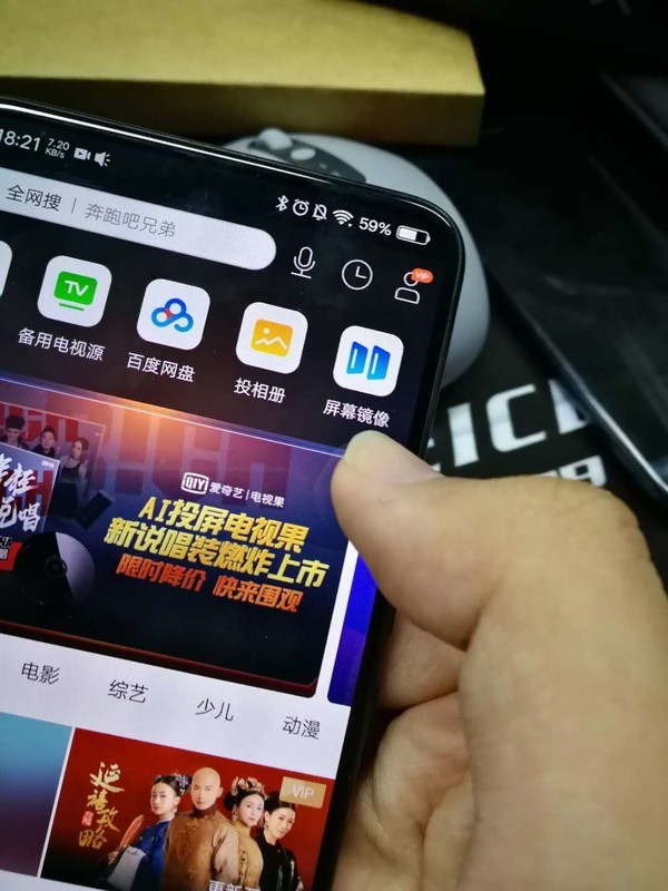 我手指的地方有个屏幕镜像按钮,点一下。