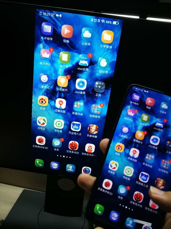 手机已经投屏了,不过是竖着显示的。我们来把王者荣耀看下横屏效果。