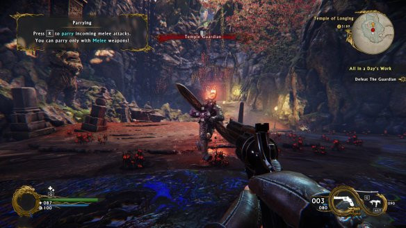 游戏中的“杀戮资源”主要有两种:武器和技能,武器系统很明显借鉴了《无主之地》系列,可以说是整个游戏的最大亮点。玩家们在游戏中可以使用很多种武器,诸如武士刀、手枪、冲锋枪、重型机枪、霰弹枪、榴弹发射器、弓箭和链锯等等,这些武器可不是让玩家们无脑瞎用的,在不同的场景下使用相应的武器非常重要。对付小型敌人使用威力大装填时间久的重型武器无异于高射炮打蚊子,而使用小手枪对付血长攻高的大型BOSS效率极低,至于使用武士刀无脑砍……有的时候还真有奇效。