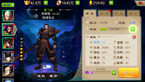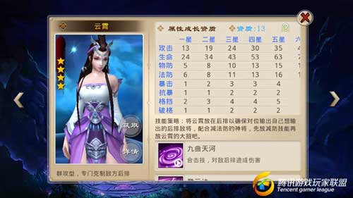 技能策略:攻击后排并附带眩晕的怒气技能形成了良好的群体伤害能力,在后排放个高阶法宝的琼霄是明智之选。