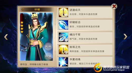 技能策略:霸道的物理群伤,与长耳定光仙等前排减防神将极其匹配。若与减防神将搭配,则轩辕的怒气技应靠后释放。