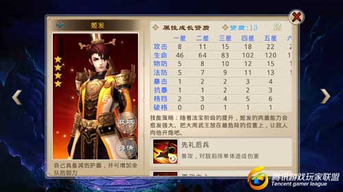 技能策略:随着法宝阶级的提升,姬发的肉盾能力会愈发强大。把大周武王放在最危险的位置上,让敌人向他开炮吧。