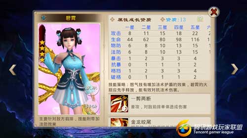 技能策略:怒气技有增加法术护盾的效果,碧霄的大招应先手释放,能有效对抗法术伤害。