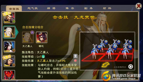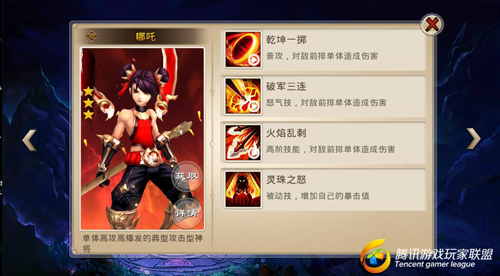 技能效果:与哪吒合击,并有较大概率使敌人灼烧,持续2回合(提升怒气技能会提上该技能的附加伤害)