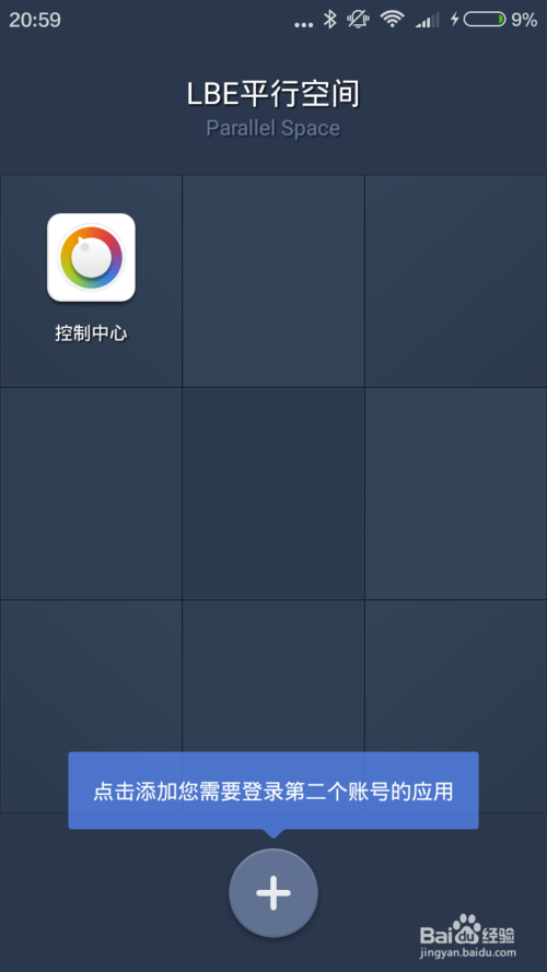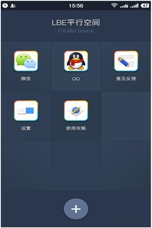 1、下载平行空间app到手机进行安装2、安装完成后手指点击平行空间app图标进入应用主界面,界面下方有一个加号的图标,点击选择你要双开的应用