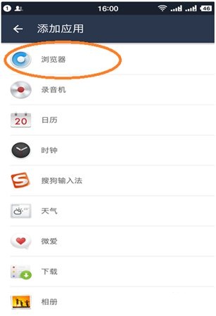 3、在支持双开的应用列表中选择你要双开的应用,点击一下即可,这里面我选择浏览器这个应用,每次添加只能添加一个应用,不能多选。