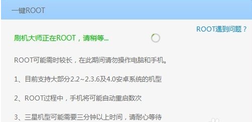 5、如果此时手机未获取Root权限,则程序会自动进行Root权限的破解,在手机重启之后,Root权限将被获取。