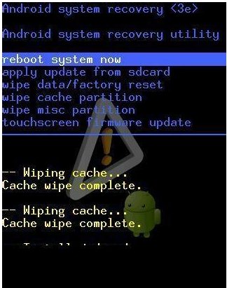 10、当用户数据清除完成后,程序会返回主界面,再次利用“音量+”和“音量-”将光标移动到“reboot system now”项,按一下“电源键”进行确认。