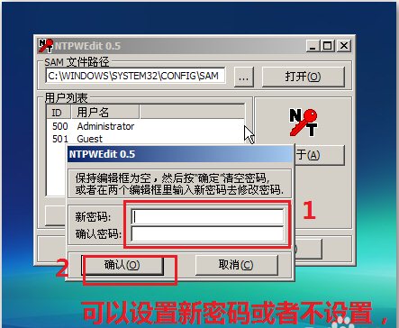 步骤四:为所选用户设置新密码;或者留空,系统没有密码。密码设置好后,单击【确认】。
