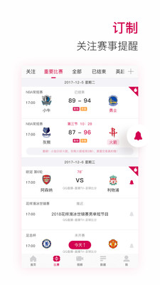 关注赛事订制闹铃提醒,不再错过热点赛事。