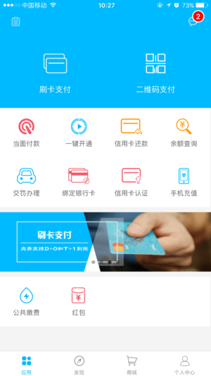 2.支持信用卡还款、大额收款、转账汇款、手机号付款、余额查询等服务功能。