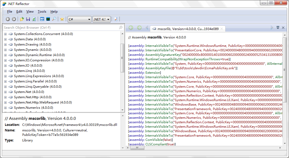 NET 2.0、.NET 3.0、.NET 3.5、.NET 4.0、Compact Framework 2.0、Compact Framework 3.5、XNA框架、银光(Silverlight)、Mono以及托管代码Direct X的程序集列表