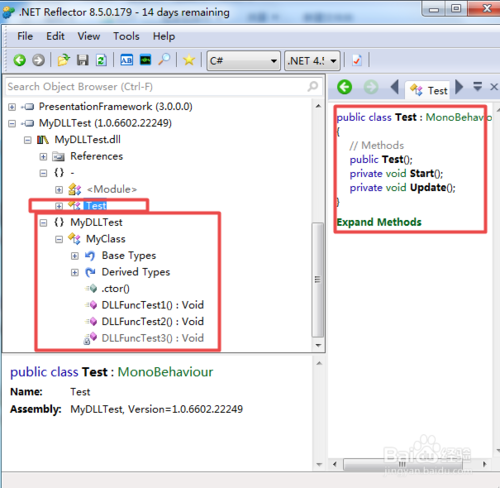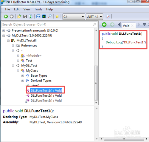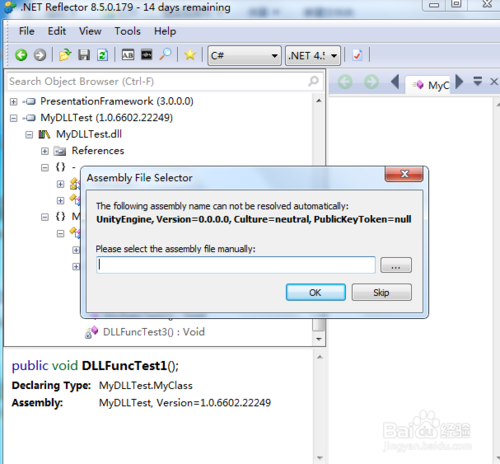 点击File-Open选择要反编译的DLL,打开后程序集的命名空间会出现在列表中。