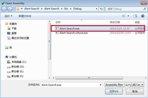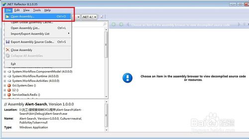 选择file中的open Assembly,这个表示打开选择你需要反编译的程序,如下图红色框标示: