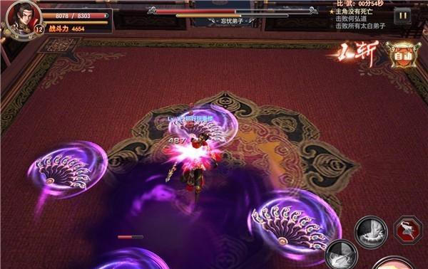 战斗的过程是华丽的,也是自由的,虚拟摇杆+按键的操作方式不多说,高AI的BOSS以及枪剑扇的打击反馈效果感觉都棒棒哒。操作达人的玩法就是无伤过关,拼技能连招,拼走位;懒人的话自然是自动战斗。
