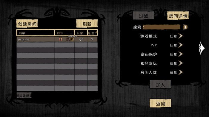 6、这样就能搜到平台里别人的房间了 ,当然你也可以点击创建房间叫上你的小伙伴一起游戏。