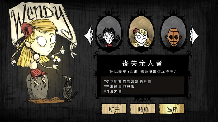 木偶大师,麦斯威尔是整个饥荒世界的主宰,具有极高的理智值,一般的饥饱值和很低的生命值(75血)。