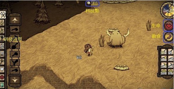 初期目标是尽快找到猪村,用肉勾引两头猪民跟你走,就可以席卷小一号的蜘蛛巢了,为什么一开始就打蜘蛛呢?为的是打两块蜘蛛肉让猪村暴动,到时候满地的猪肉可以让你轻松活过大半月的。之后就是找地方安营,建起科技机器,累积科技点改善生活了。