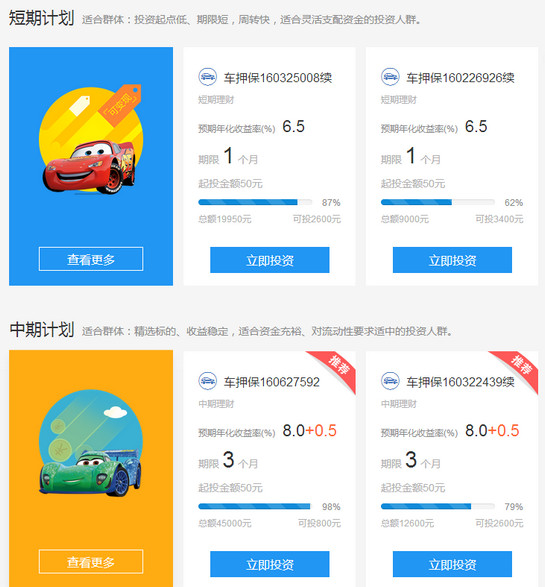 投资人投资车押保/房押保后,根据标的的实际年化收益率进行收益(每月还息到期还本或一次还本付息至可用余额),投资期限结束后,可自行选择提取至银行账户。