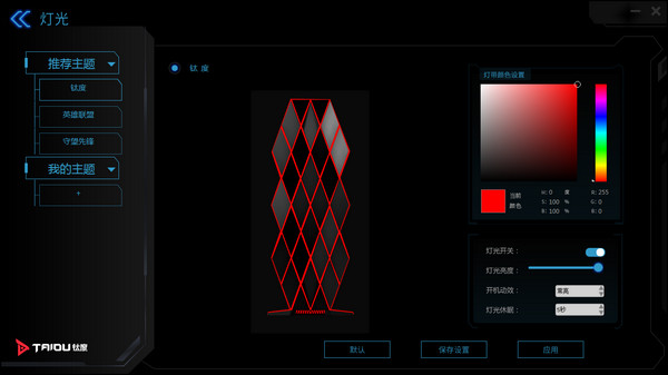 安装后,打开软件,进入灯光调节功能,目前有英雄联盟、守望先锋的主题可供选择。