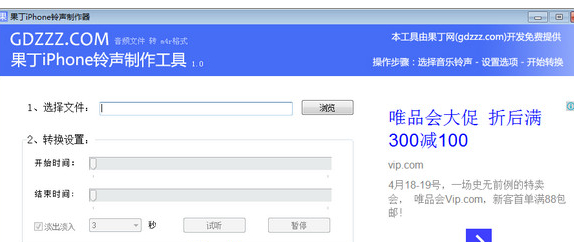 2、转换设置,设置开始时间,结束时间,铃声时长。