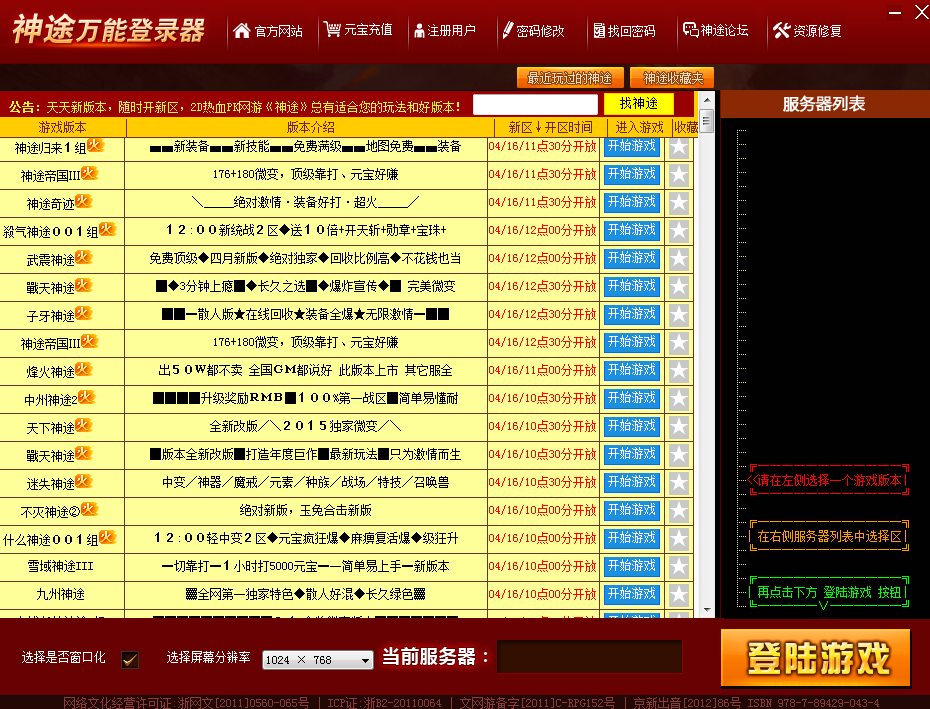 3、成功打开神途万能登录器,选择区服即可开启游戏