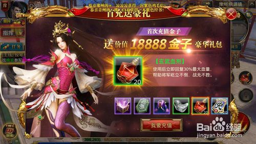职业选择好了过后就一直做任务升级,因为很多活动必须要升级后才能解锁。所以玩这个游戏升级是第一要务。给大家贴上首充的图,大家可以看下,首充的称谓和装扮可以用。