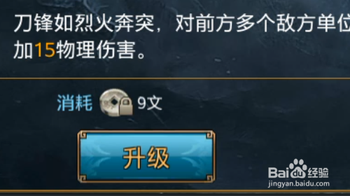 于是,我们再来看摧枯拉朽这个技能。我们升级这个技能需要9文钱。我们也不缺9文钱,点击下方的升级后该技能也上升到2级。
