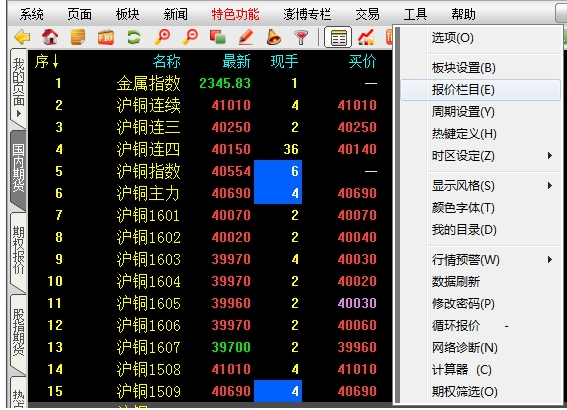 (1)在报价界面点击菜单中的“工具”,选择“报价栏目”,如图3-1-2: