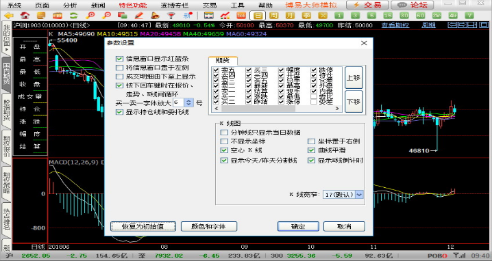 操作方法:单击右键选择“属性”,或者点击菜单栏上的“工具”按钮,在下拉菜单中选择“选项”,在弹出的窗口中对“选中行买一卖一字体放大*号”进行调整(如图3-1-4、3-1-5、3-1-6),调整后 “买价”“卖价”的数字会相应变化(如图3-1-6)。