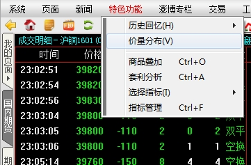 1.点击菜单栏中的“特色功能”,在下拉菜单中选择“价量分布”(如图6-4-1)。
