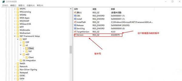 找到位置 HKEY_LOCAL_MACHINE\SOFTWARE\Microsoft\NET Framework Setup\NDP\v4\Client