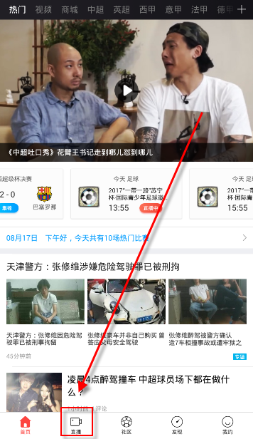1.打开软件,点击下方“直播”按钮