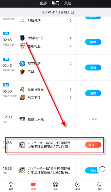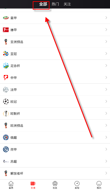 2.进入直播页面,在“全部”可以找到所有赛事直播视频