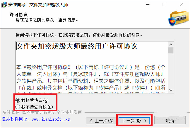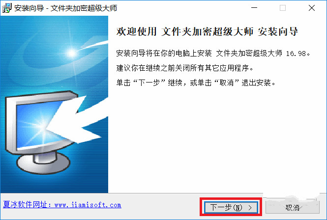 在本站下载并运行最新的文件夹加密超级大师安装包,点击下一步