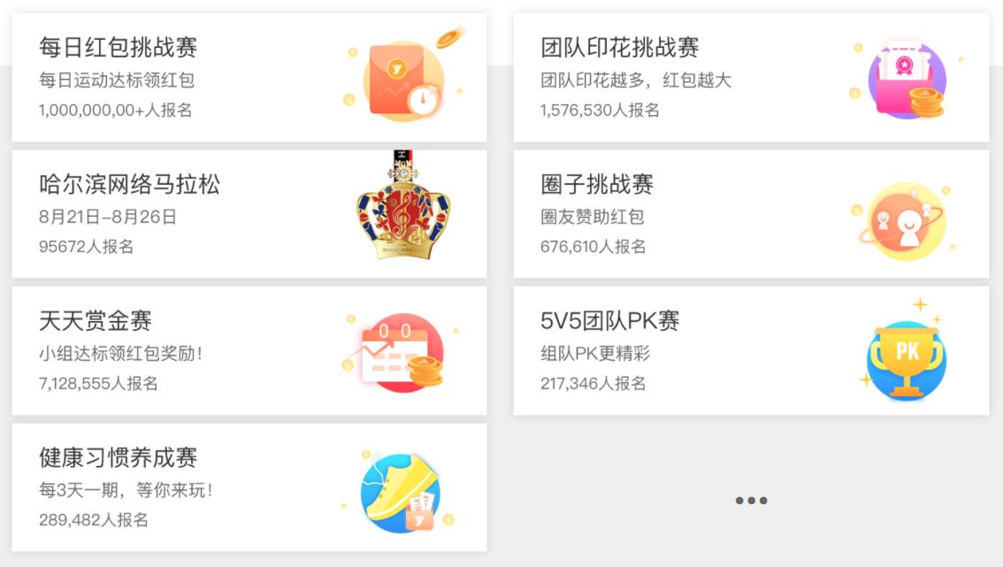天天赏金赛、习惯养成赛、健走闯关赛,胜者瓜分失败者赏金,坚持运动有红利;