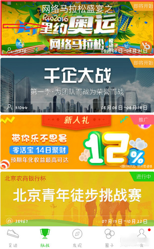 挑战:网络马拉松的各种活动,可选择参加与远在千里的网友进行PK。