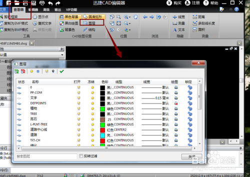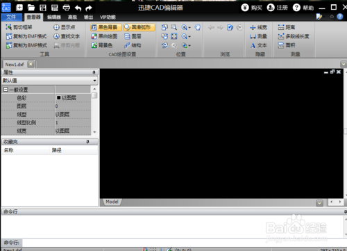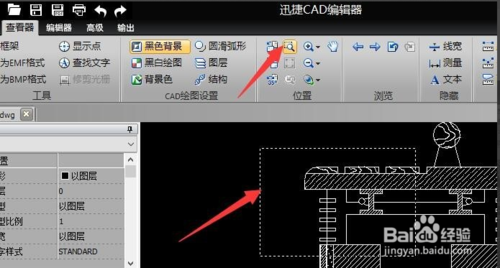打开CAD图纸文档后,我们可能更喜欢在黑色背景下进行编辑操作,对此切换到“查看器”选项卡,点击“黑色背景”按钮即可。