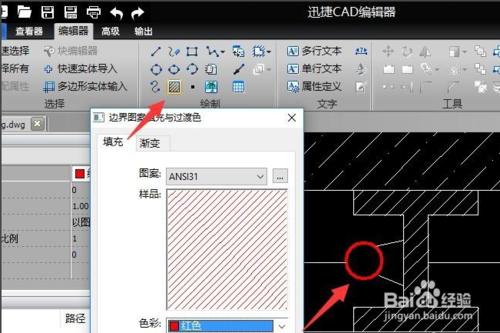 当然,也可以对图形进行填充操作,如图所示,点击“绘图”列表中的“填充图案”按钮,即可对封闭区域进行填充。