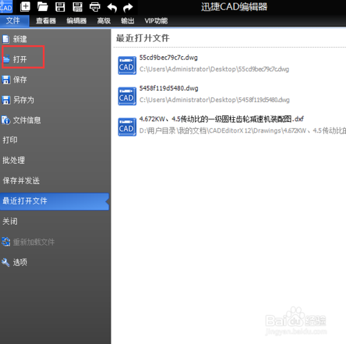 点击文件菜单下的打开按钮。