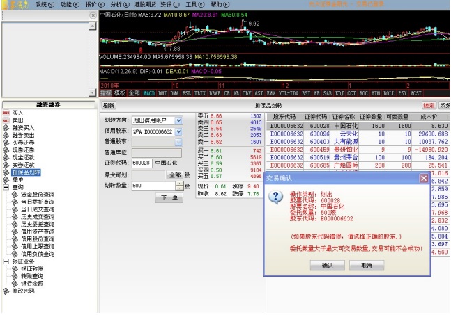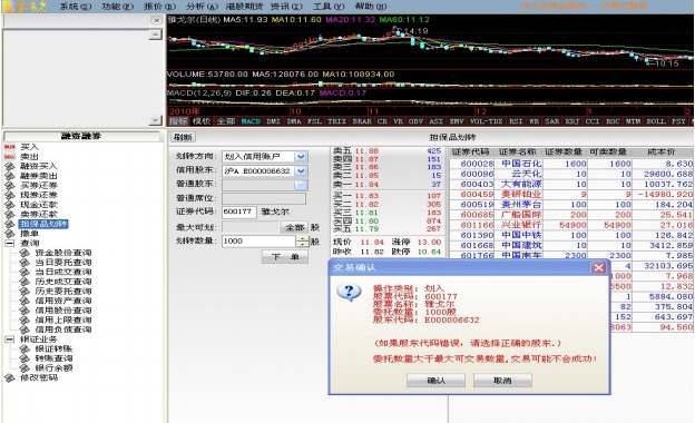 选择“担保品划转”菜单后,首先选择担保品划转方向(划入到信用账户或划出到普通账户),再选择划转证券所属的市场(沪 A 或深 A)。
