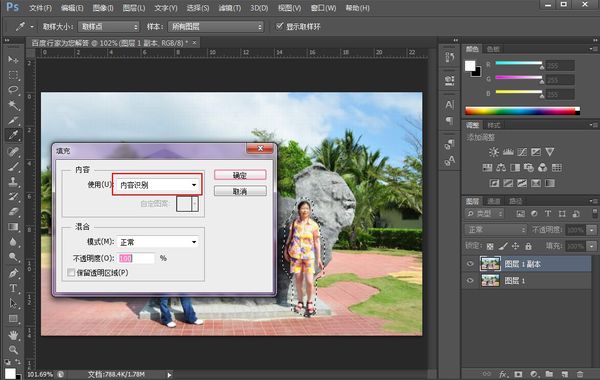 利用Potoshop去除多余物品和人物方法较为复杂,需要根据具体情况应用到仿制图章工具、修补工具、污点修复工具、内容识别填充等。