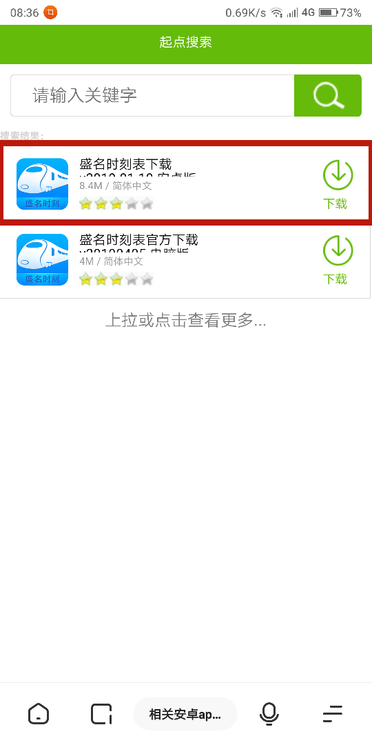 2.进入起点后搜索盛名时刻表,选择第一个进入下载页面